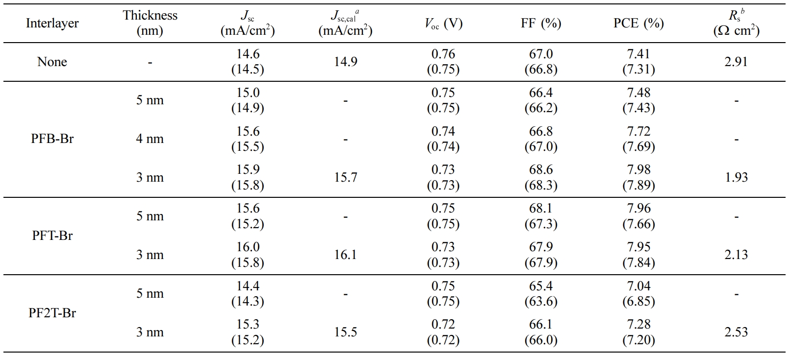 Table 1 Photovoltaic Performances of PSCs with the Best PCE. The Averages of 20 Devices are Shown in Parentheses |