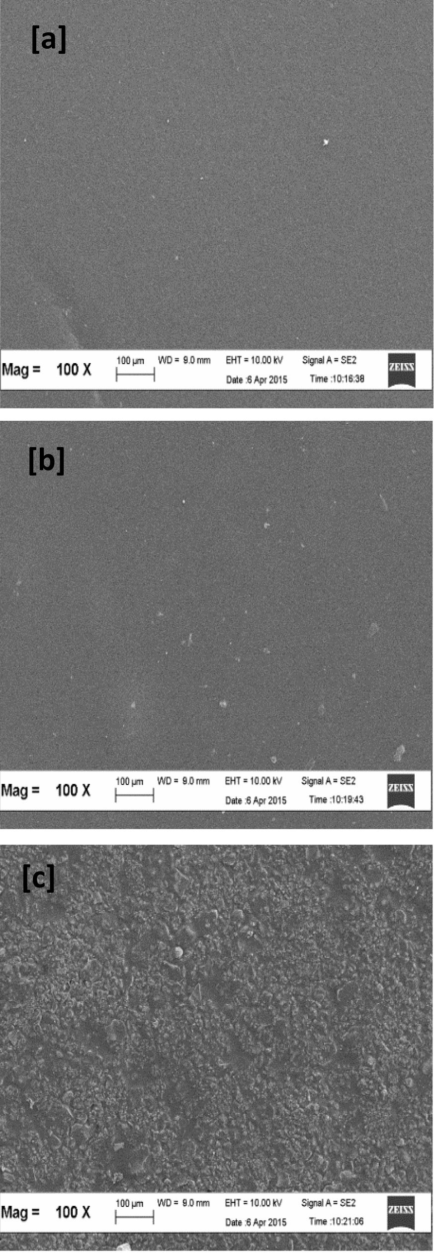 Surface morphology of (a) neat PVA; (b) 80/20 PVA/ESP biocomposite; (c) 60/40 PVA/ESP biocomposite.