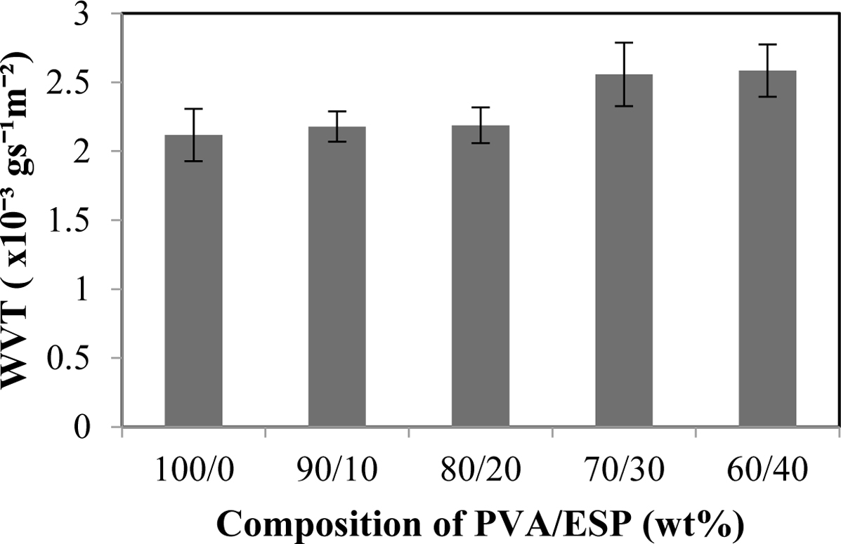 Water vapour transmission of PVA/ESP biocomposite at different composition.