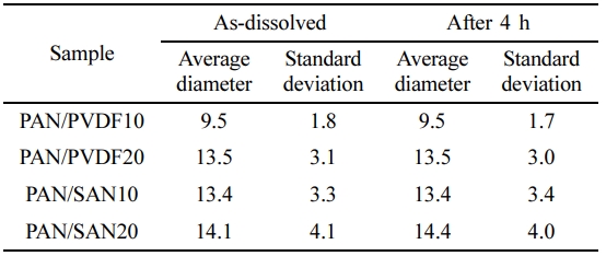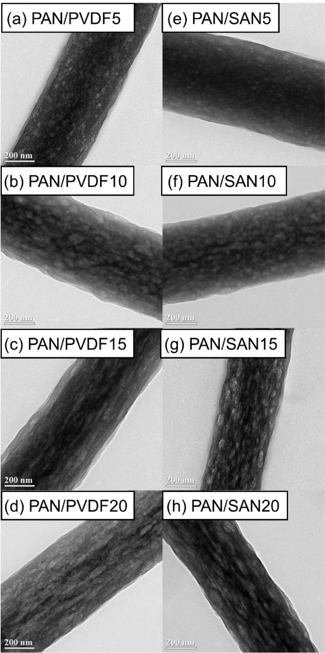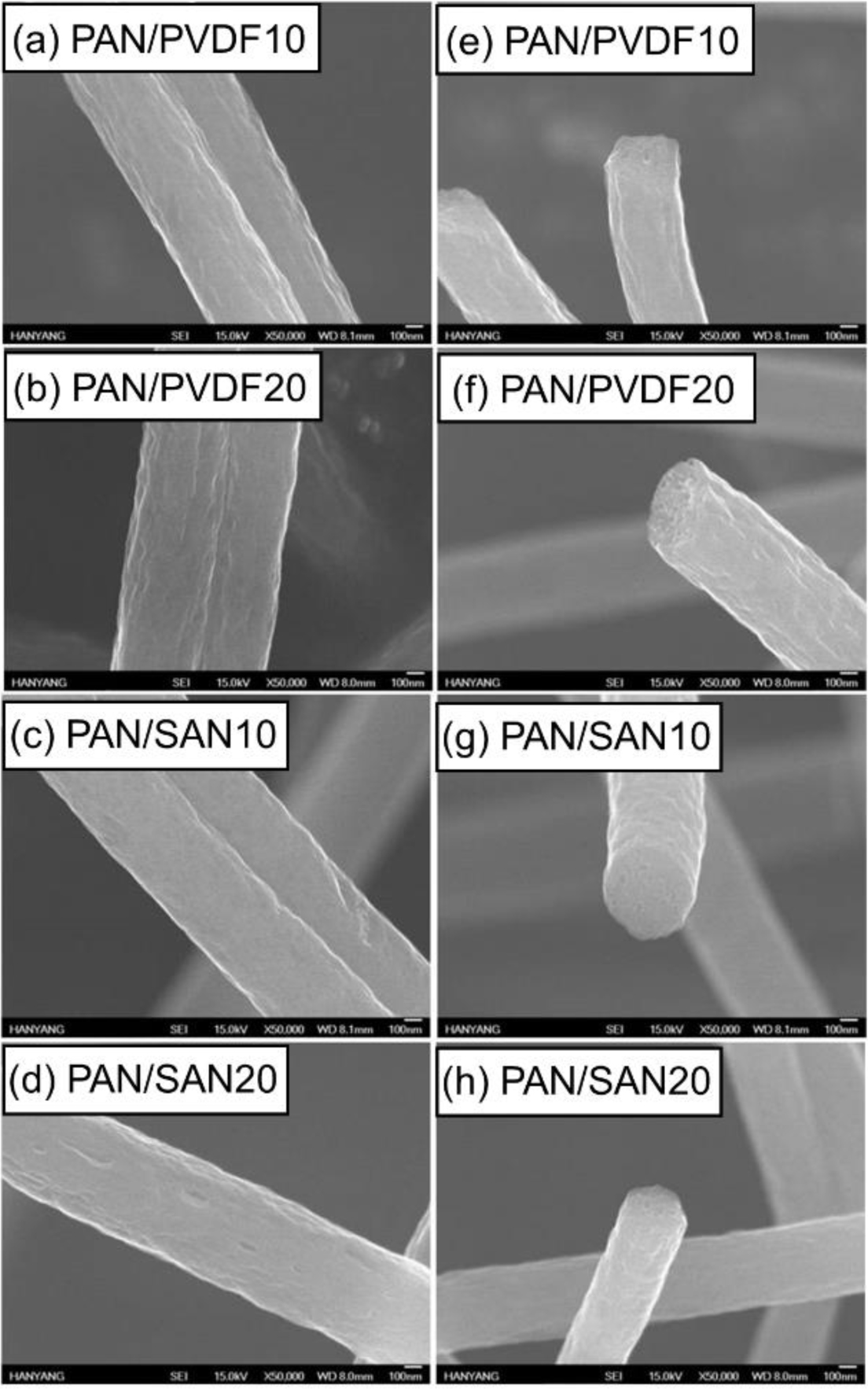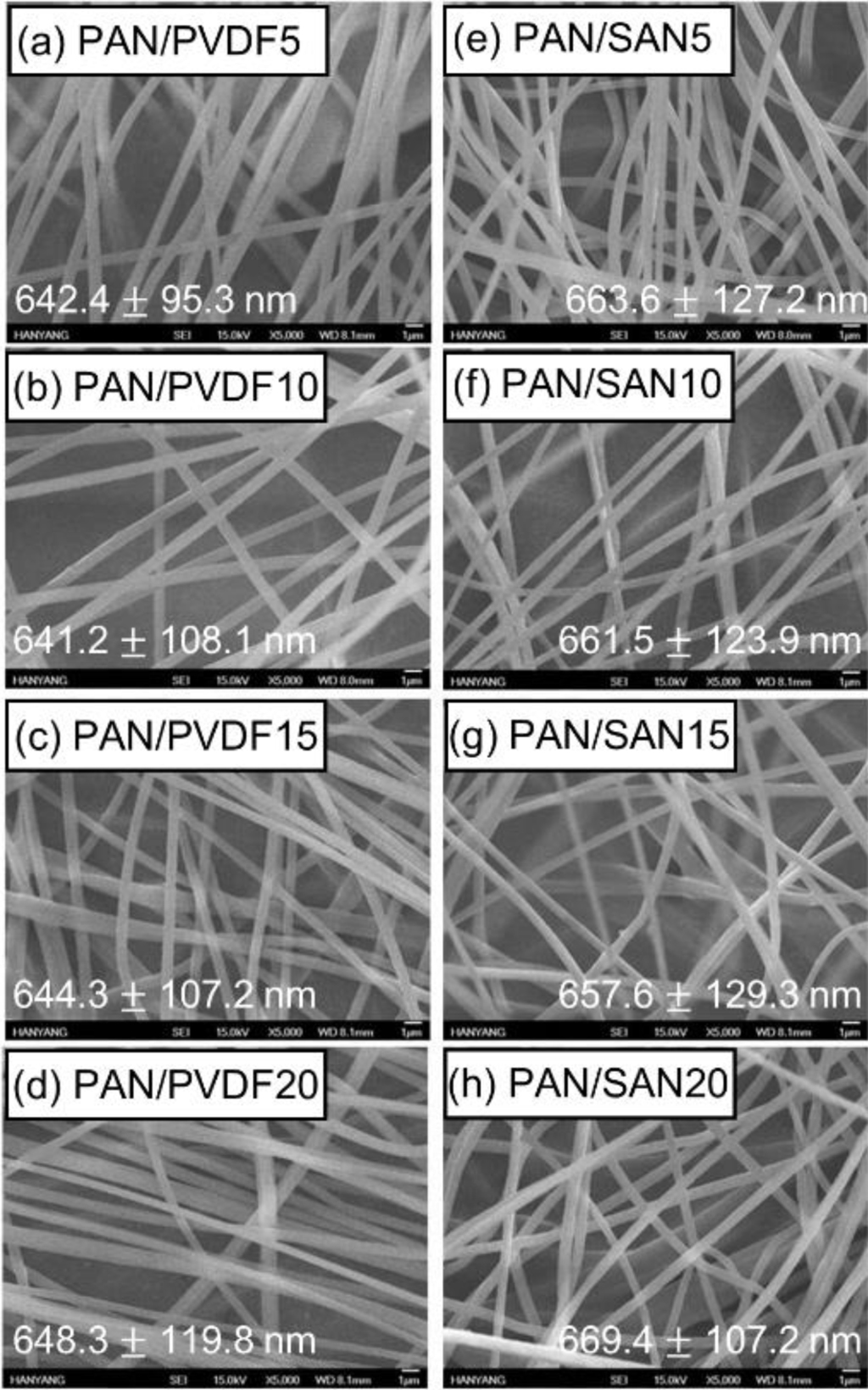 Materials.PAN (Mw ~ 150000), PVDF (Mw ~ 275000) and SAN (Mw ~ 165000; AN content of 25 wt%) were purchased from Sigma Aldrich (USA). N,N-dimethyl formamide (DMF), purchased from Duksan (Korea), was used as a common solvent.