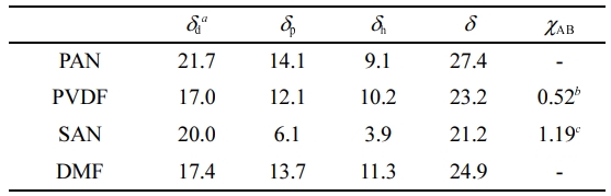 Table 2 Overall and Individual Solubility Parameters of PAN, PVDF, SAN and DMF |