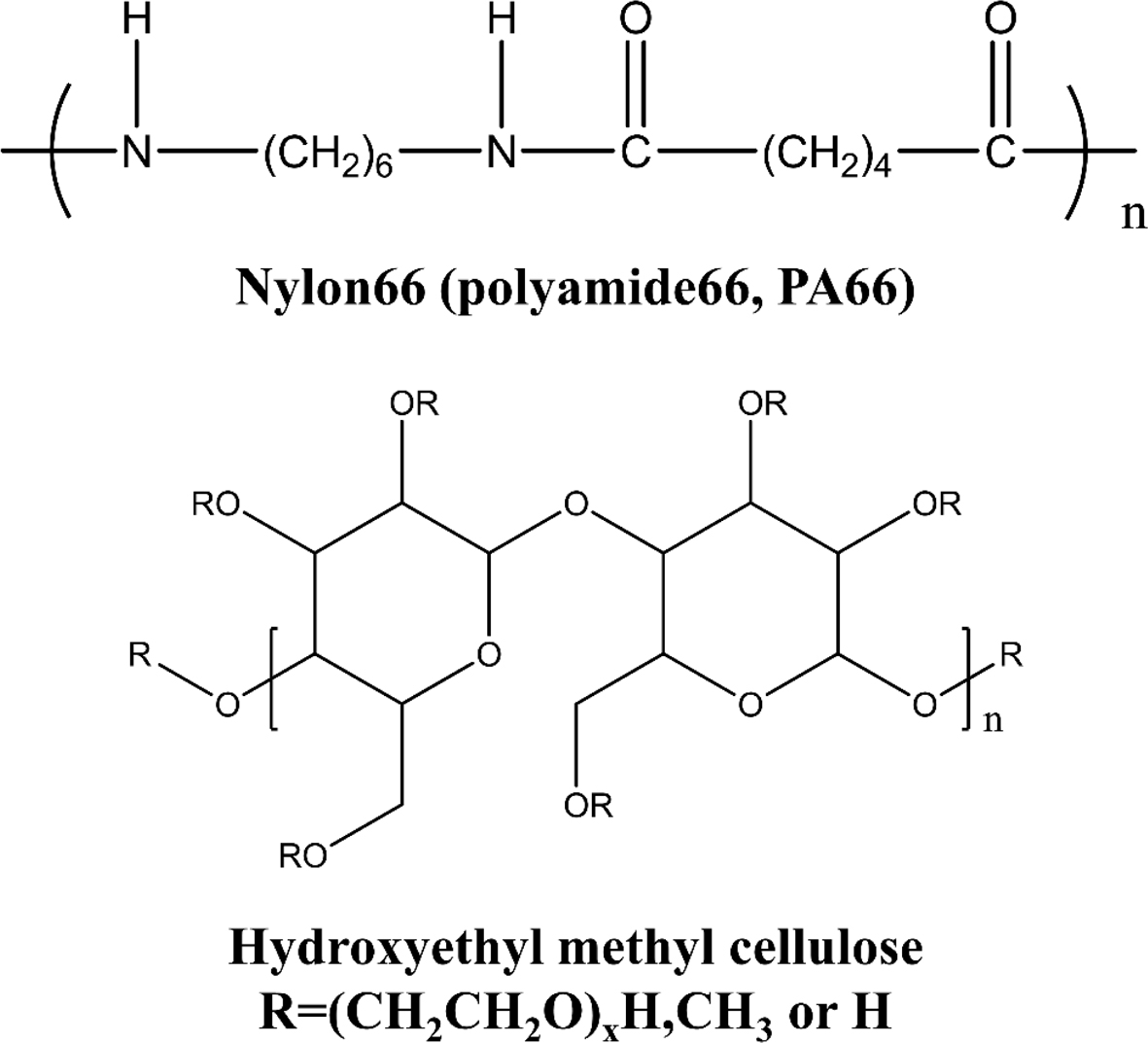 Structure diagram of nylon66 (polyamide66) and hydroxyethyl methyl cellulose.