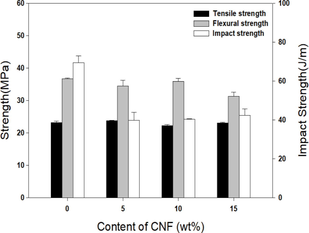 Figure 5 Mechanical properties of PP/CNF composites as a function of CNF content. |