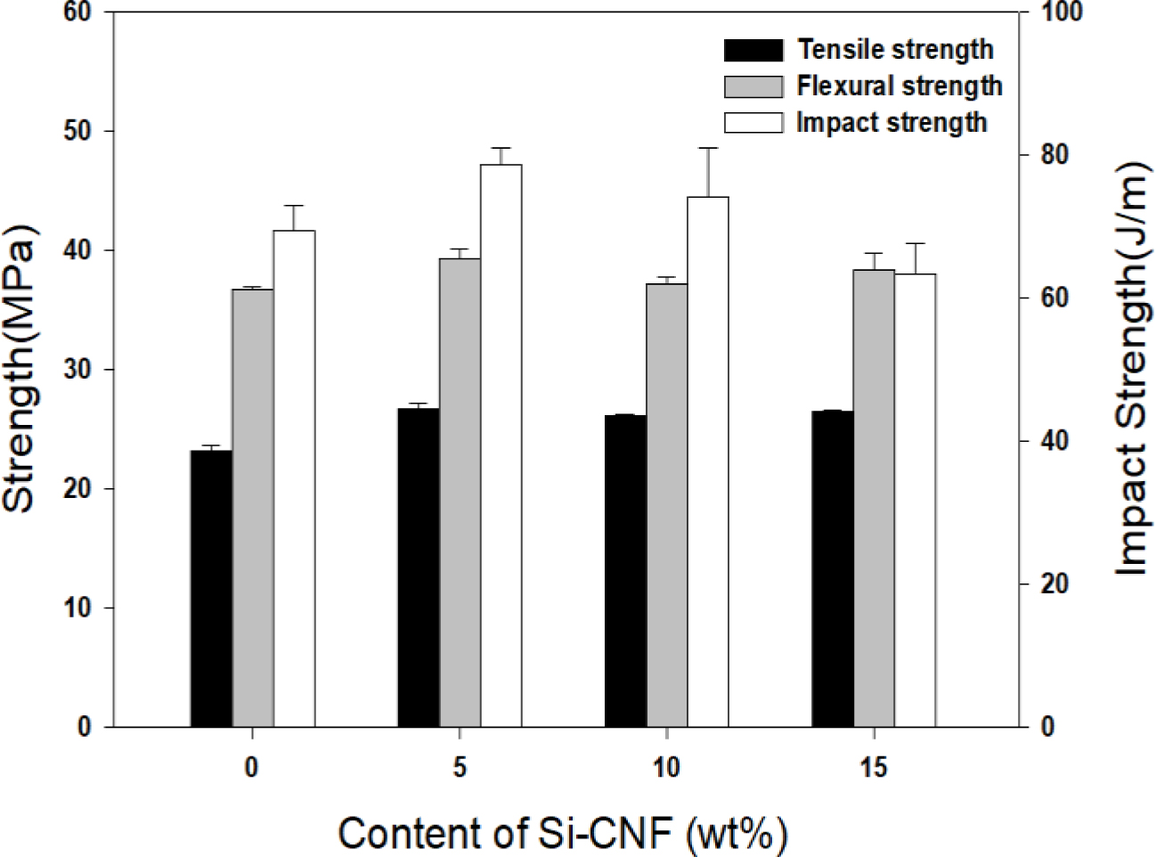 Figure 6 Mechanical properties of modified PP/Si-CNF composites as a function of Si-CNF content. |