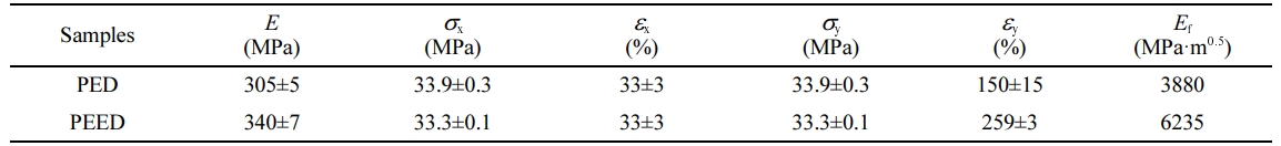E: Young’s modulus. sx: Yield strength; sy: Tensile strength. ex: Yield elongation. ey: Elongation at break. Ef: Fracture energy. |