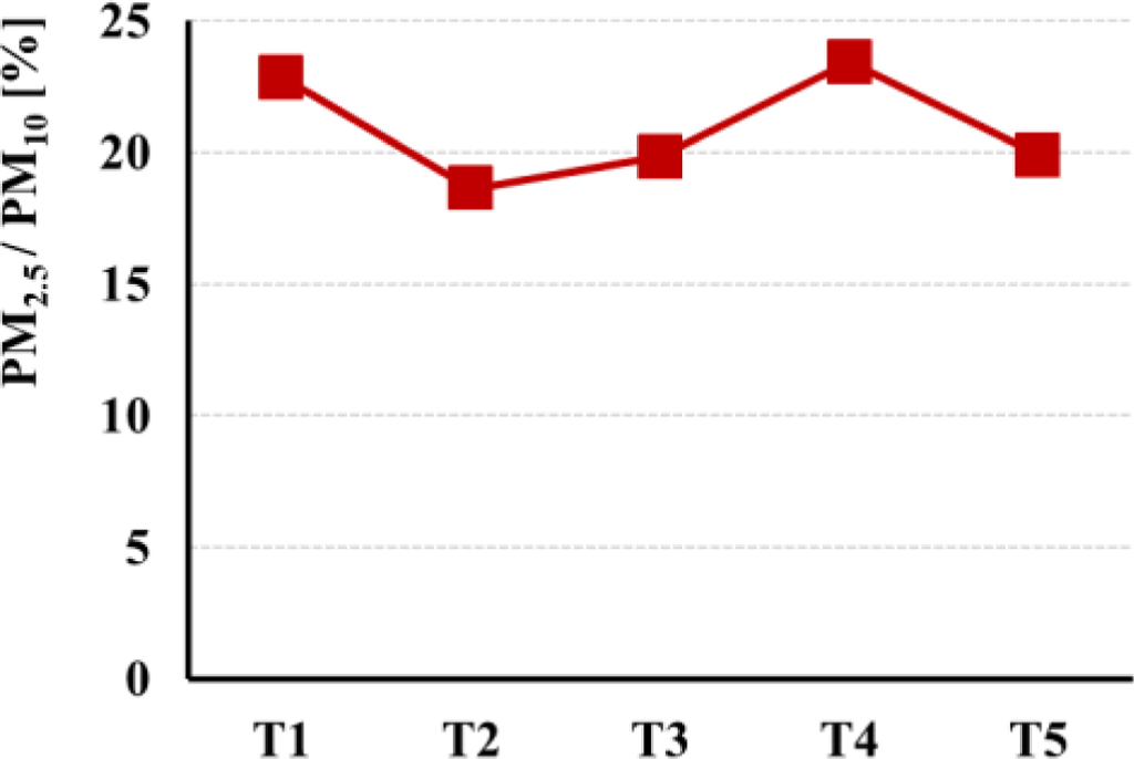 Figure 5 Ratio of PM2.5 and PM10 of T1-T5 tread. |