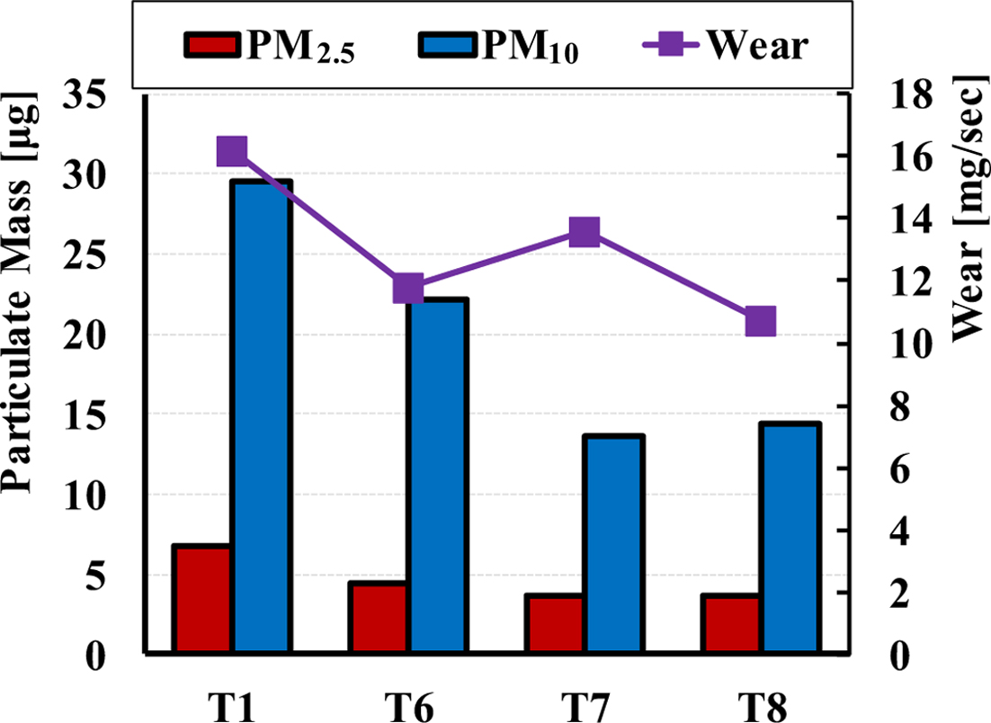 Figure 7 PM mass and wear rate of T6-T8 tread using APS. |