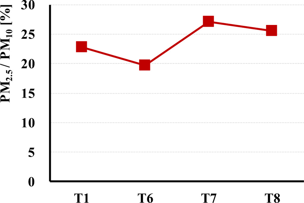 Figure 8 Ratio of PM2.5 and PM10 of T6-T8 tread. |
