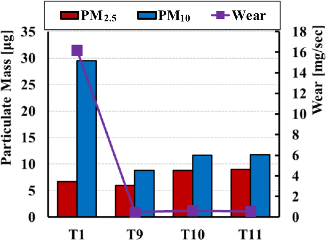 Figure 10 PM mass and wear rate of T9-T11 tread using APS. |