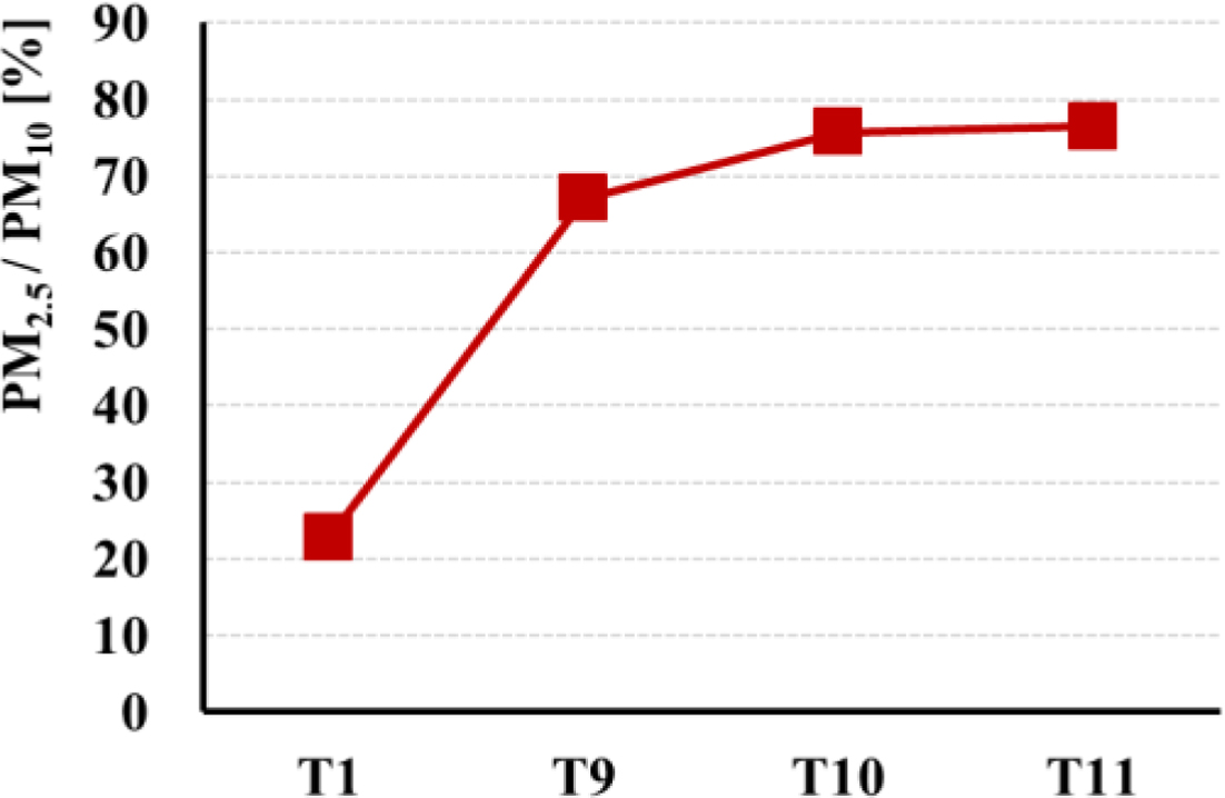 Figure 11 Ratio of PM2.5 and PM10 of T9-T11 tread. |
