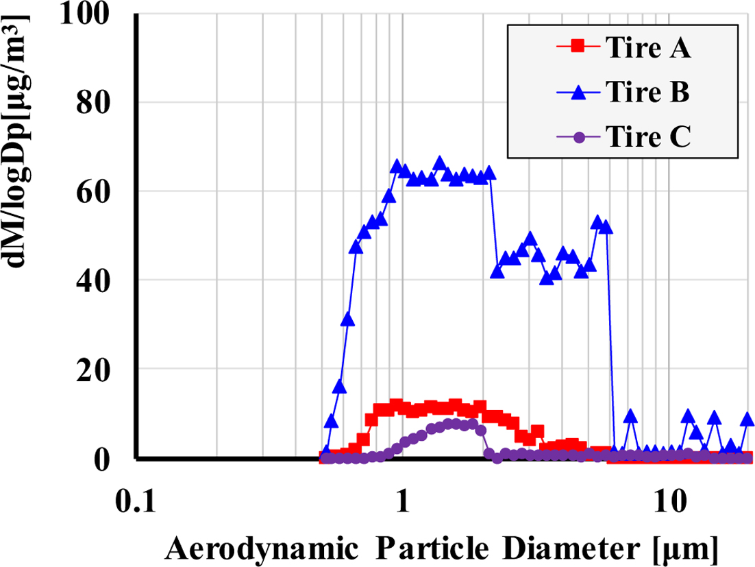 타이어 트레드 마모 미세먼지의 질량, 수 농도 및 입경분포도를 측정하기 위하여 aerodynamic particle sizer(APS, TSI 3321, USA) 및 휴대용 질량농도 측정기를 사용하였다. APS를 이용하여 유량 1 LPM으로 0.37~20 μm 크기의 입자를 측정하였고, 그 결과를 휴대용 질량 농도 측정기와 비교하여 실험값으로 사용하였다. 또한 카본블랙 측정을 위해서 블랙카본 측정기(Aethlabs, AE-51, USA)를 사용하였다.