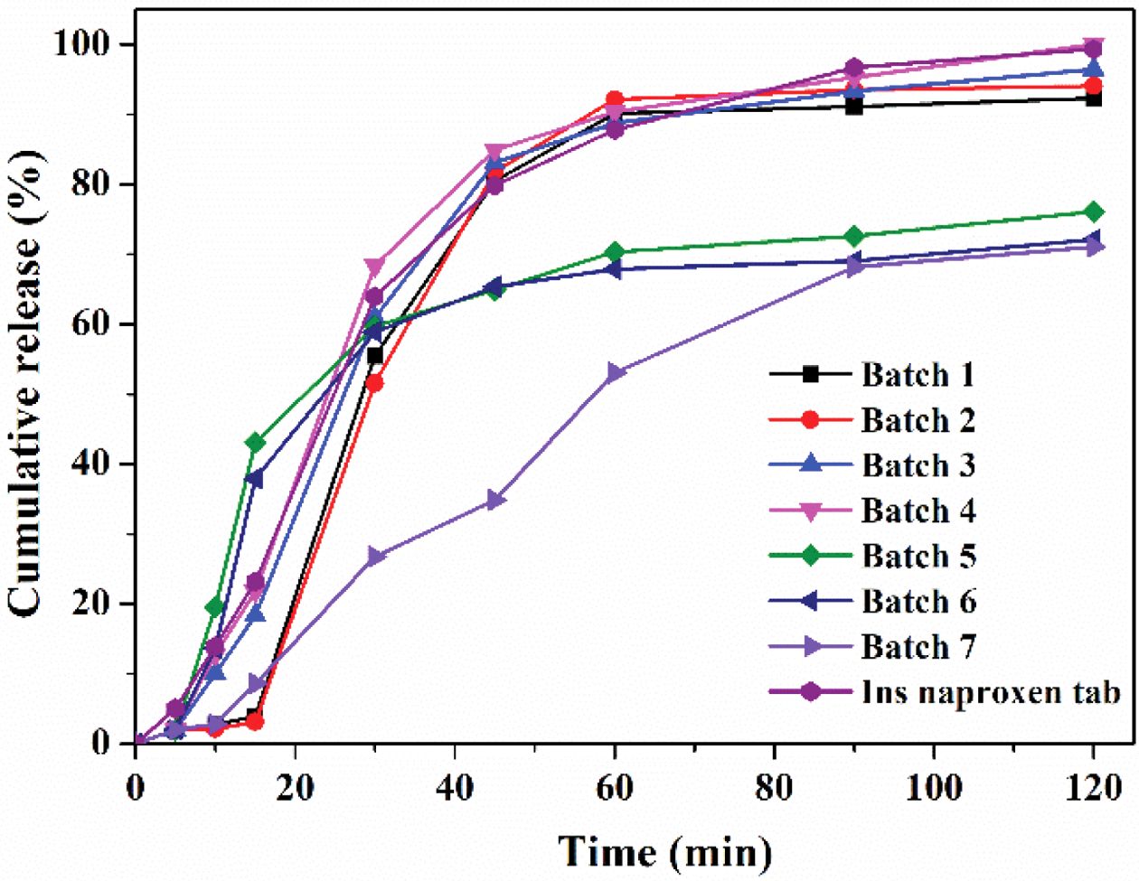 Figure 5 Release behavior of naproxen tab, Batch 1, Batch 2,