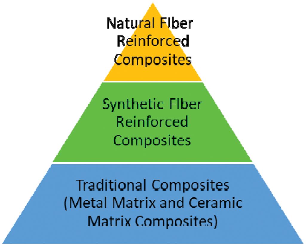 Natural fiber-reinforced polymer composites (NFRPCs) are now replacing conventional materials in many design applications, like automotive,1 aviation, sports, and so forth, because of their significant mechanical and environment-friendly properties.2-4 Regardless of glass, carbon, or Kevlar fibers being the most widely recognized reinforcements in material science. Recently efforts have been made to supplant the synthetic fibers with natural fibers (for example, fibers containing lignocellulose, cellulose) due to growing environmental concern and rapid depletion of oil assets.5-7 Natural fibers have been praised by both the scholarly community and industry owing to their sustainability, biodegradability, and recyclability. Furthermore, their abundance with low cost made them ideal potential materials.8,9 Figure 1 shows that these natural fibers reinforced are considered the most advanced composites nowadays.