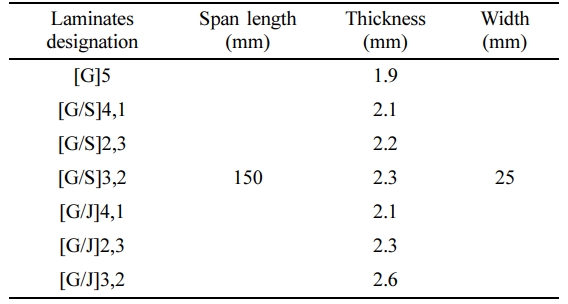 non-hybrid composites vs. [G,S]3,2 hybrid laminates; (d) non-hybrid composites vs. [G,S]2,3 hybrid laminates. |