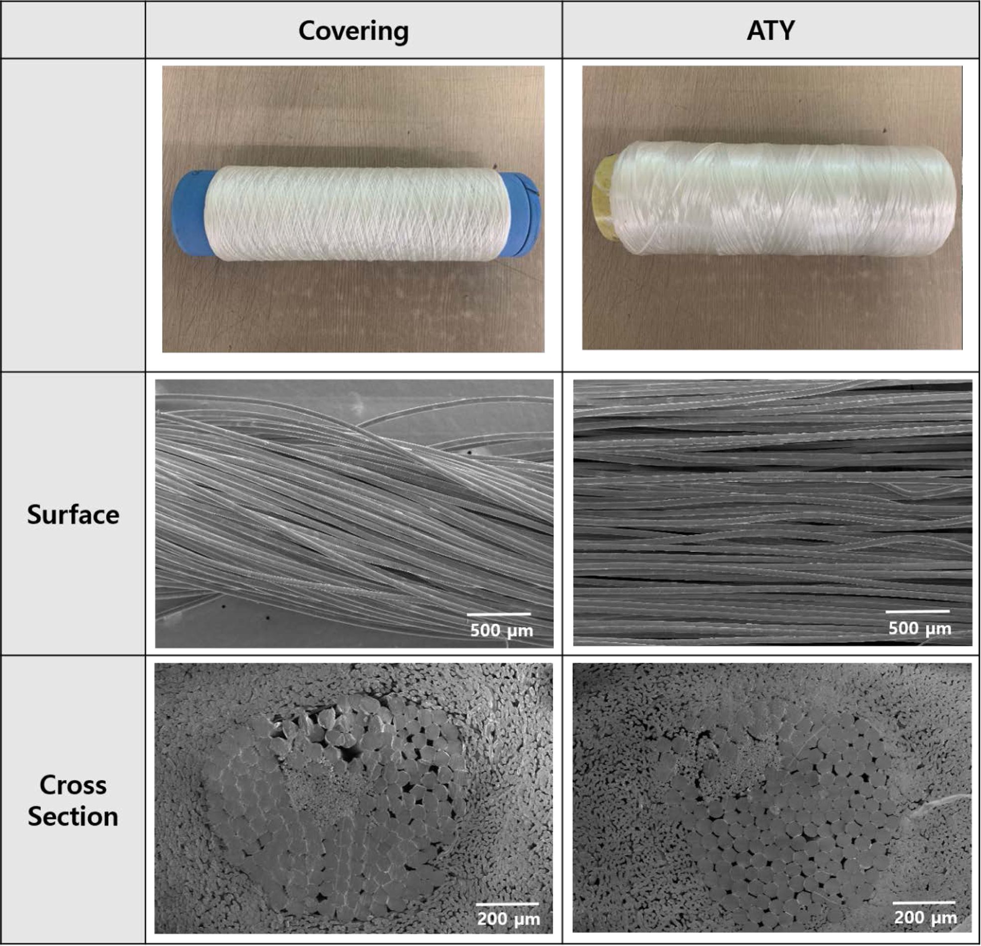 Figure 1 Structure of prepared commingled yarn by the covering and ATY methods |