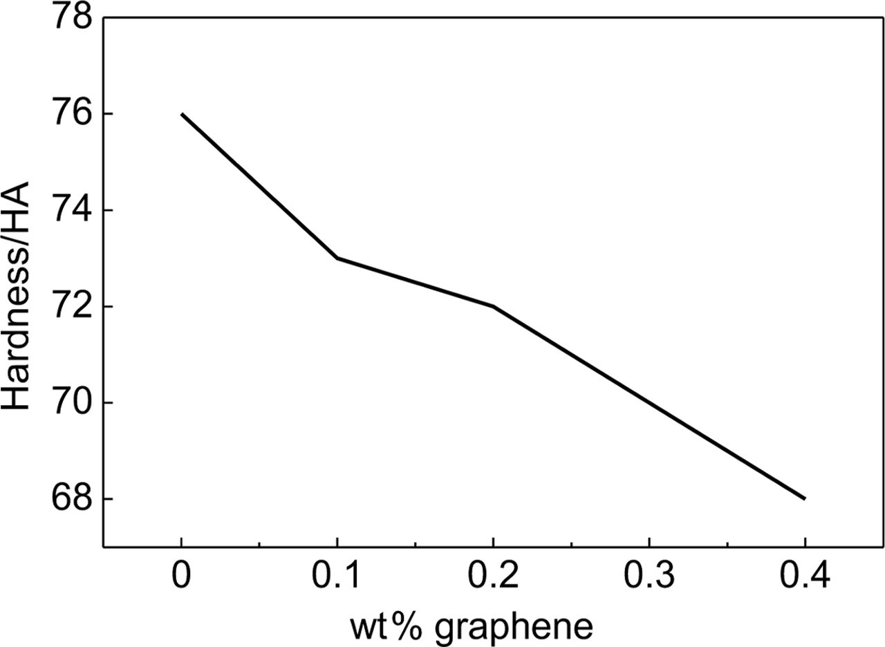 Physical and Mechanical Properties. Physical and mech- anical properties of the composites with different graphene contents are listed in Table 2. And the variation of the hardness of composites as a function of graphene content is shown in Figure 1.