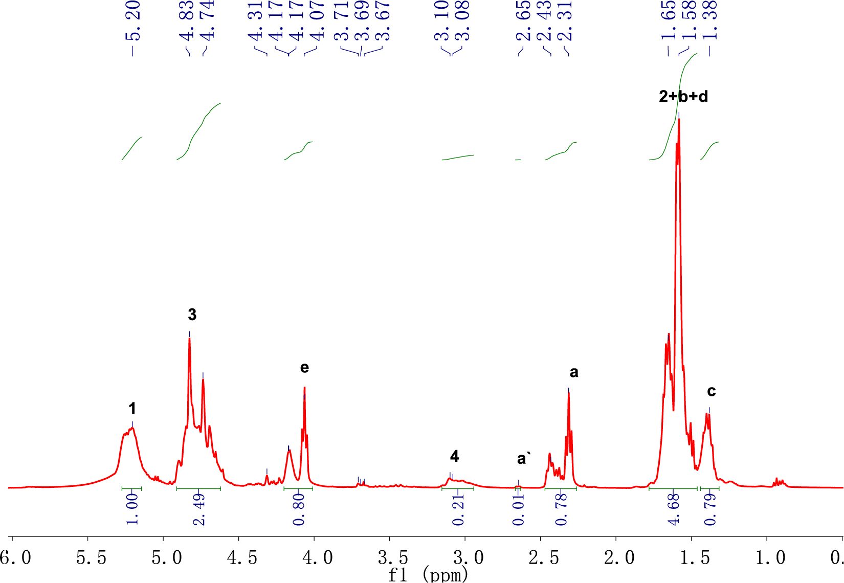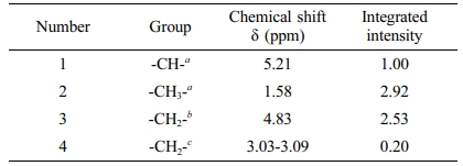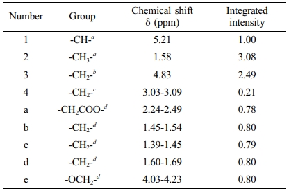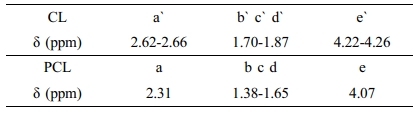 Table 2 Chemical Shift and Peak Area of Each Proton Peak in PLGA-CL1 |