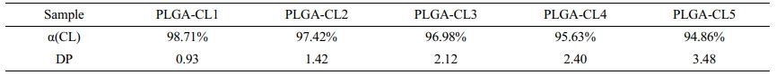 (2) 1H NMR spectra indicated the synthesis of PLGA-CL. The conversion rate of CL in copolymer is more than 94%, and the degree of polymerization of PCL segment increases with the content of CL increases.