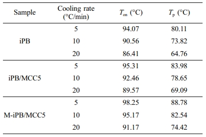 Table 1 Non-Isothermal Crystallization Peak Parameters of the iPB/MCC Composites at Different Cooling Rate |