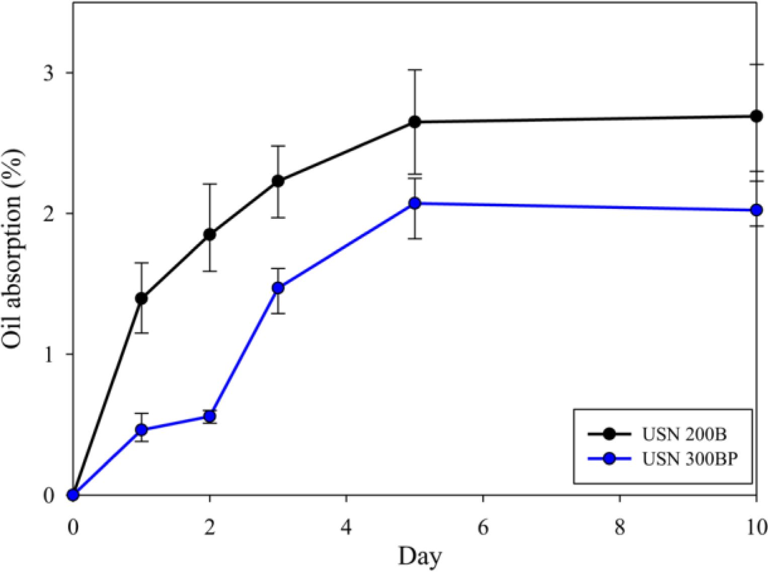 Oil absorption rate of USN 200B and USN 300BP.