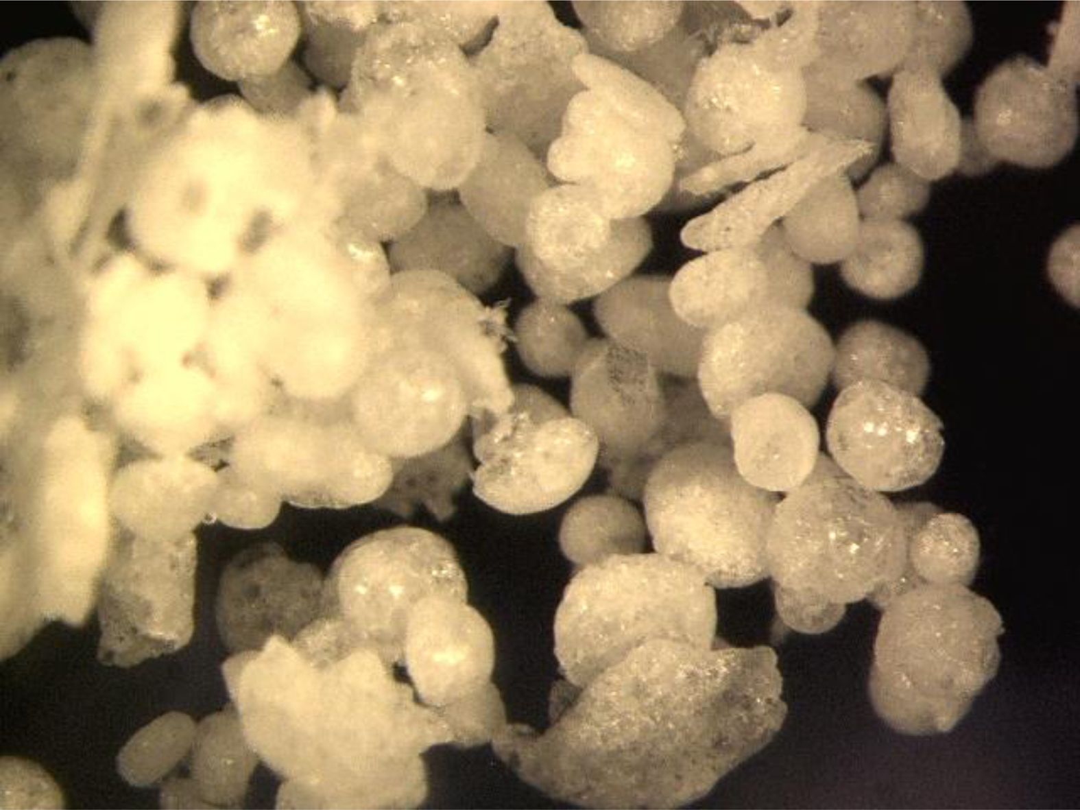 Optical microscopic image of dried PCL microparticle sample (Bulk polymerization, initiator: DBAE, [CL]/[I]=100).