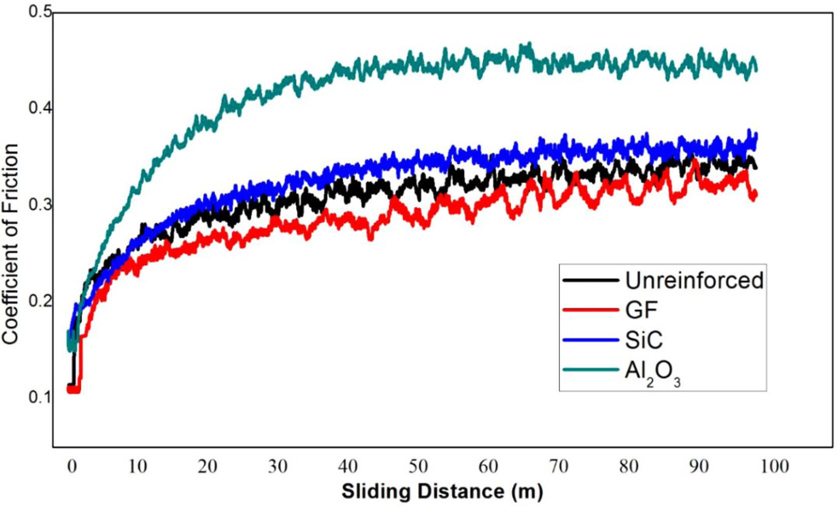 Average CoF of GF-, SiC- and Al2O3-filled PU