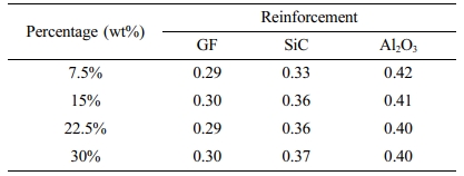 In this paper, PU composites reinforced with GF, Al2O3, and SiC were fabricated and the effects of the filler materials on the tribological properties were investigated.