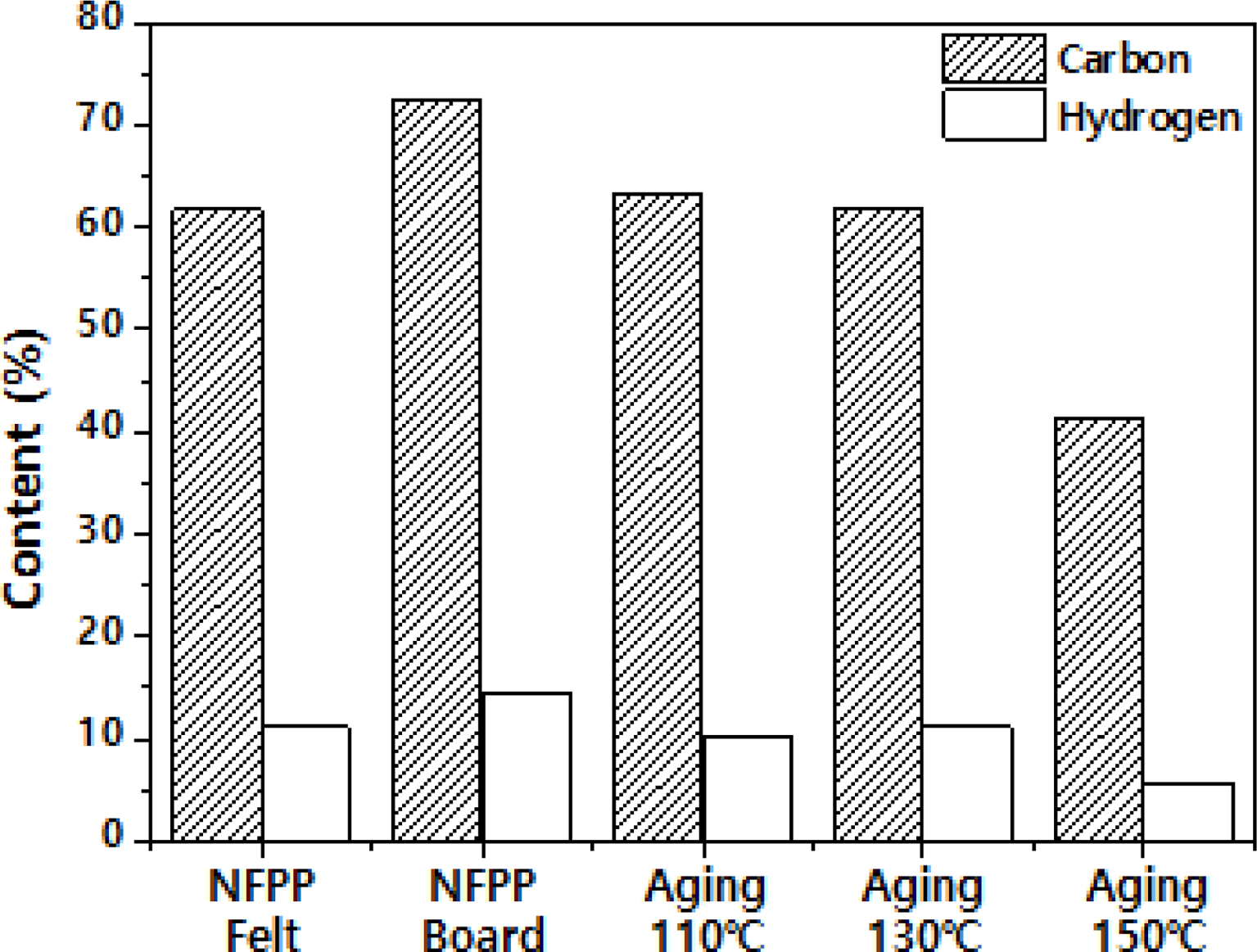 Figure 3 Carbon and hydrogen content of NFPP, NFPP board, and aging sample. |
