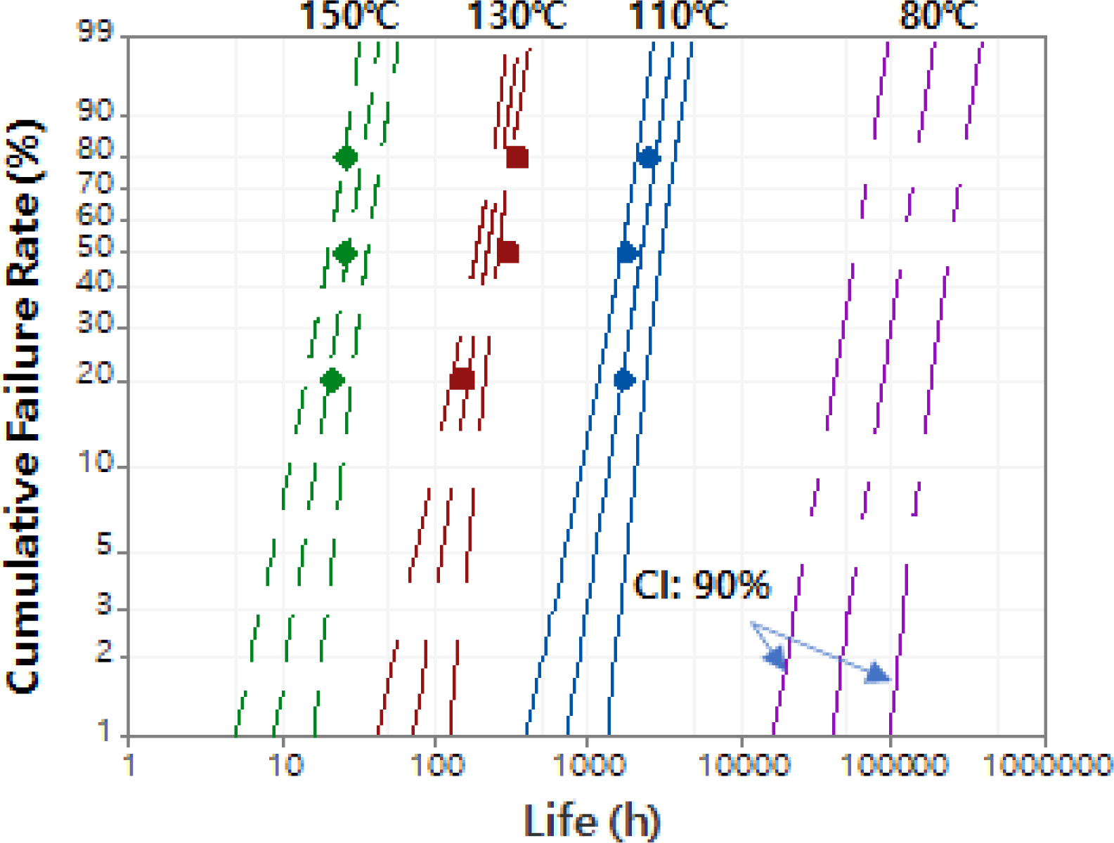 Figure 4 Arrhenius-Weibull probability plot of the NFPP board. |