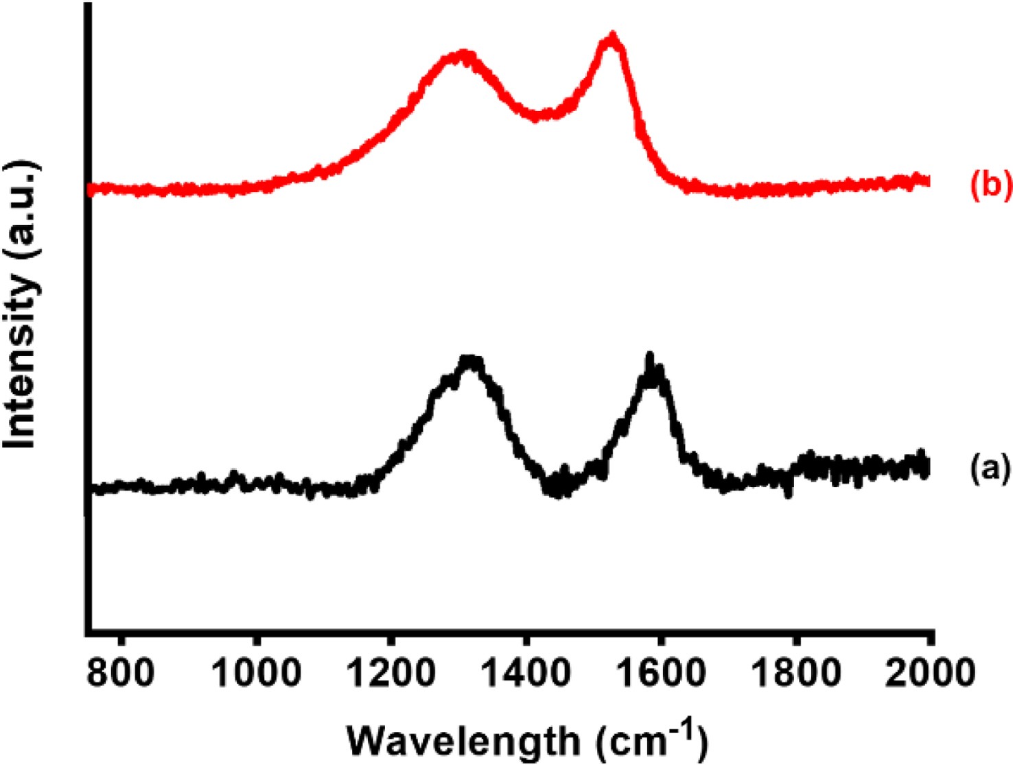 Raman spectra of (a) CNFs derived from PI/PVDF; (b) CNFs derived from crosslinked PI/PVDF.