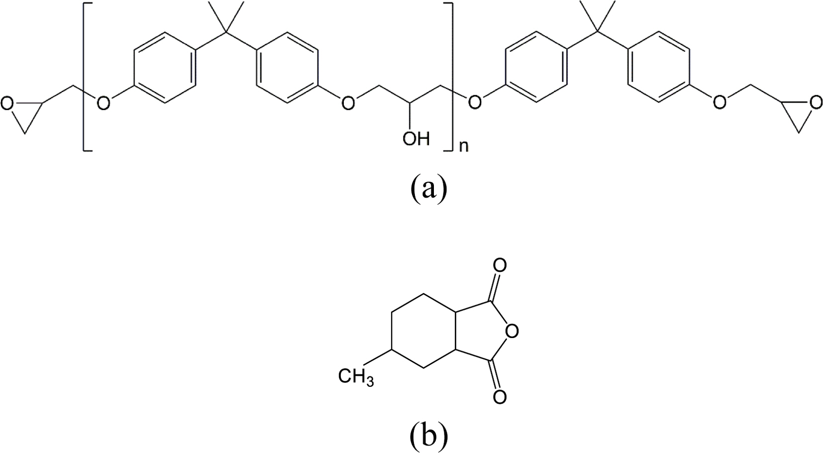 Figure 2 Chemical structures of the materials used in this study; (a) DGEBA, (b) MHHPA. |
