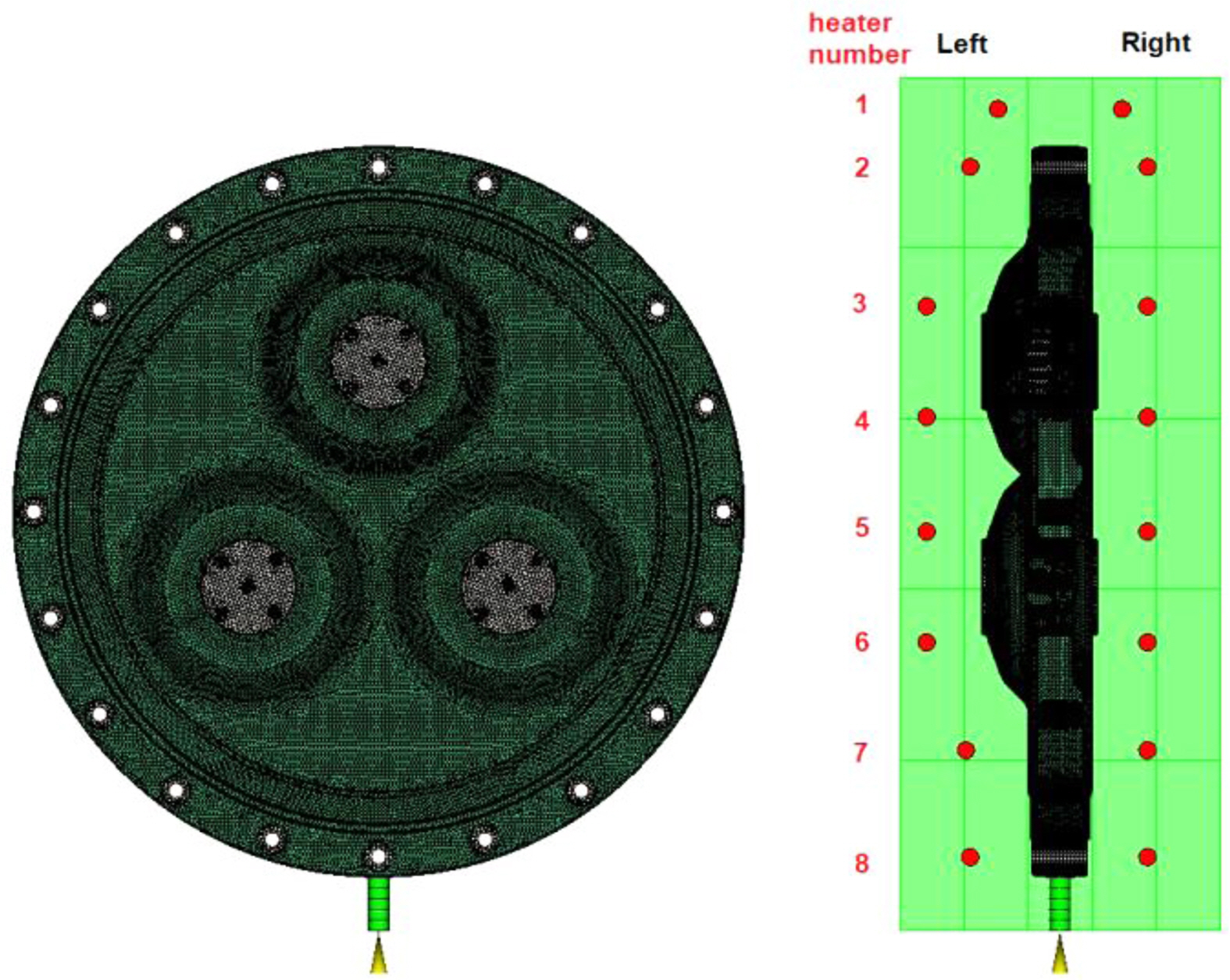 Figure 3 Three dimensional model of the GIS spacer with heaters used in this study |