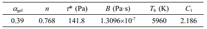 Cross Castro-Macoskco model에서의 여러가지 인자 들을 구하여 Table 6에 수록하였다. 이렇게 구한 인자들을 이용하여 cross Castro-Macosko model을 완성하였는데 C1+C2a 의 경우 구하기가 매우 어려워 일반적으로 C2=0으로 설정하는 바 본 연구에서도 C1 값만을 구하였다.