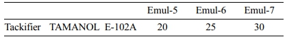 2. 유화제 조합을 달리하여 제조한 점착제의 초기점착력은 상용화된 유성 가모용 점착제에 비해 낮은 초기점착력을 보여주었으나, 점착부여제를 감소시켜 제조한 결과, 상용화된 유성 점착제에 비해 동등 이상의 초기 점착력을 보여주었다.