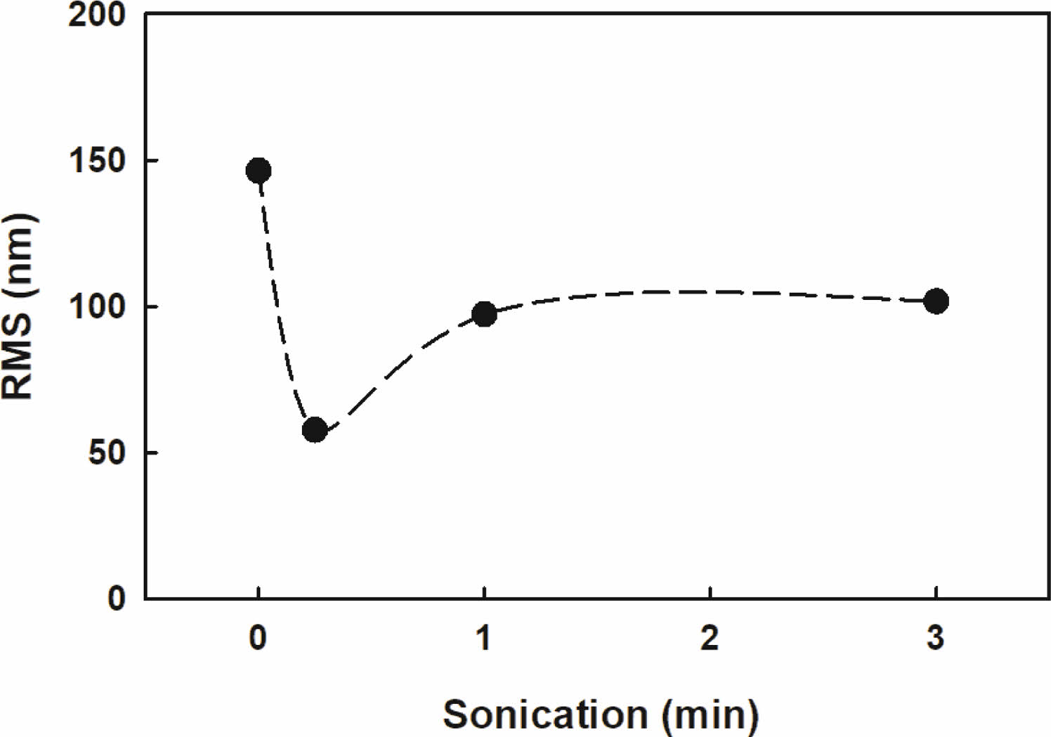 Figure 10 Roughness of molded surface versus sonication time of G50. |