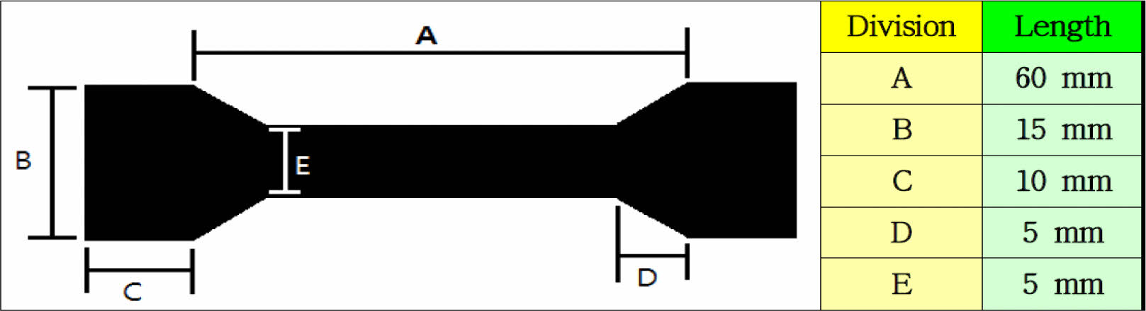 유기용매의 종류에 따른 PMMA 필름의 물성평가. 유기용매 종류에 따른 PMMA 필름의 물성평가를 위해 인장시험규격 ASTM D882-18에 따라 dry/wet 상태로 설정한 시편을 제작하였고(Figure 1), MTS(material test system, LLOYD Ins., USA)를 사용하여 극한 강도를 시간에 따라 load(N)로 측정하였다.