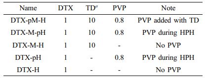Particle size, PDI, and zeta potential of DTX nanocrystals.