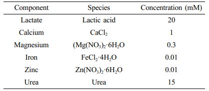 인공 땀의 제조. 인공 땀을 제조하기 위해 uric acid(UA, Sigma-aldrich, USA), L-ascorbic acid(AA, Duksan, Korea), L-lactic acid(LA, TCI, Japan), urea(urea, Sigma-Aldrich, USA), calcium chloride(CaCl2, Yakuri, Japan), iron(II) chloride tetrahydrate(FeCl2·4H2O, Junsei, Japan), zinc nitrate hexahydrate(Zn(NO3)2·6H2O, Alfa Aesar, USA), magnesium nitrate hexahydrate(Mg(NO3)2·6H2O, Sigma-Aldrich, USA)를 Table 1과 같은 농도로 PBS 200 mL에 녹여 베이스 용액으로 사용하였다.15 제작된 용액(100 mL)에 글루코스(10 mM) 용액을 희석하여 글루코스 농도가 0-4 mM(0.5 mM 단위)되도록 제작했다.