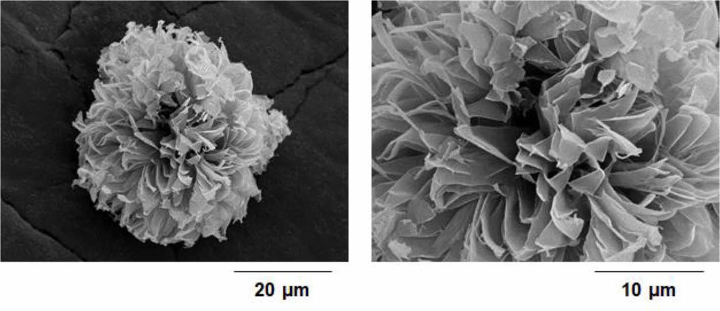 낙엽적층구조 미세입자의 형태학적 분석. 90 oC로 가열된 PCL 용액(테트라글리콜에 용해)을 4 oC에서 냉각하는 간단한 방법(heating-cooling technique)을 통해 낙엽적층구조를 가지는 미세입자를 제조하였다. 제조된 미세입자는 전체 형태가 마치 얇고 길쭉한 낙엽이 쌓인 듯한 구조를 가지고 있어서 낙엽적층구조 미세입자(LSS microparticles)라고 명명하였다(Figure 3).32 이 독특한 형태의 낙엽적층구조는 가열된 고분자 용액의 냉각(침전)과정에서 고분자 사슬들의 초기 응집 및 추가 결정화로 설명될 수 있다. 테트라글리콜은 상온에서 PCL을 용해시킬 수 있는 good solvent가 아니므로, 온도를 가하여 PCL의 테트라글리콜에 대한 용해도 높여 투명한 PCL 용액을 제조할 수 있었다. 이 용액의 온도를 다시 낮추면, 용액 내에서 PCL의 용해도가 낮아져 자연스럽게 고분자의 침전이 발생하게 된다. 이때, 반결정성(semi-crystalline)의 PCL의 결정성 부분(crystalline region)끼리 먼저 응집(aggregation 혹은 crystallization)하게 되고, 이 응집이 구형으로 성장(spherical growth)하면서 미세입자를 형성하게 된다.32,35,36 본 연구팀의 선행 연구를 통해 이러한 낙엽이 적층된 것과 같은 구조(pillar-like structure)의 거친 표면과 넓은 표면적으로 인해 세포 부착 및 증식에 유리한 환경을 제공함을 확인할 수 있었으며, 이러한 현상은 타 연구팀의 연구에서도 이미 잘 알려진 사실이다.32,36,37 따라서 이러한 낙엽적층구조 미세입자를 세포와 혼합하여 스페로이드 형태로 만든다면, 세포-미세입자의 높은 친화력에 의한, 세포 스페로이드의 형태적 안정성을 부여할 수 있으리라 판단되었다. 또한, 미세입자의 다공들은 스페로이드의 외부와 내부를 연결하는 채널(channel)로의 역할, 즉 세포 생존에 필수적인 인자들을 세포 스페로이드 내에 균일하게 전달 및 세포 대사물질을 외부로 방출하여 기존 세포 스페로이드의 가장 큰 한계인‘불균일한 세포의 구성’문제를 해결할 수 있는 새로운 시스템으로 적용이 가능하리라 기대되었다.