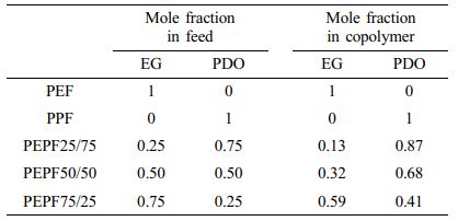 Table 1 Mole Fraction of EG and PDO in Copolym ers According to Mole Fraction in Feed |