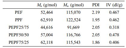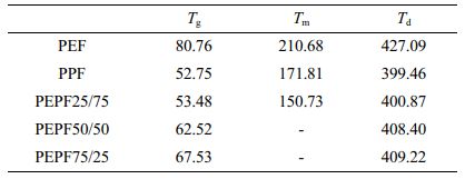 Table 3 Thermal Properties of PEF, PPF, PEPF 25/75, PEPF50/50 and PEPF 75/25 (unit: oC) |