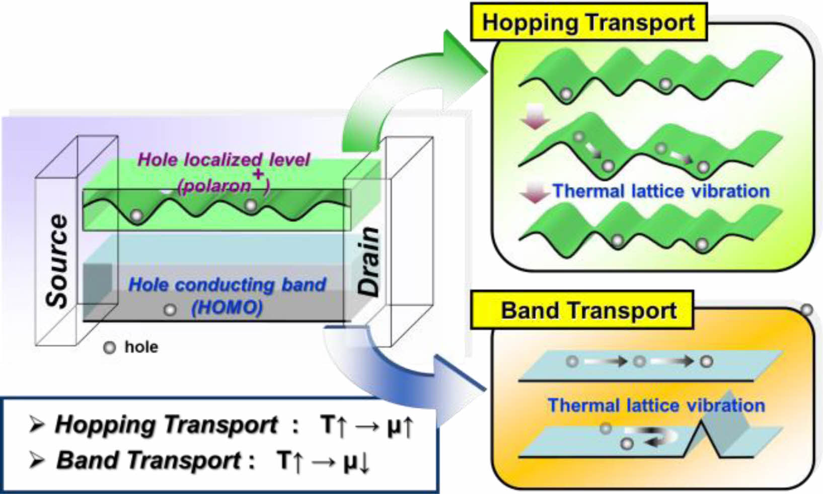 Figure 1 Schematic illustration of charge transport mechanism in crystalline conjugated polymer thin film |
