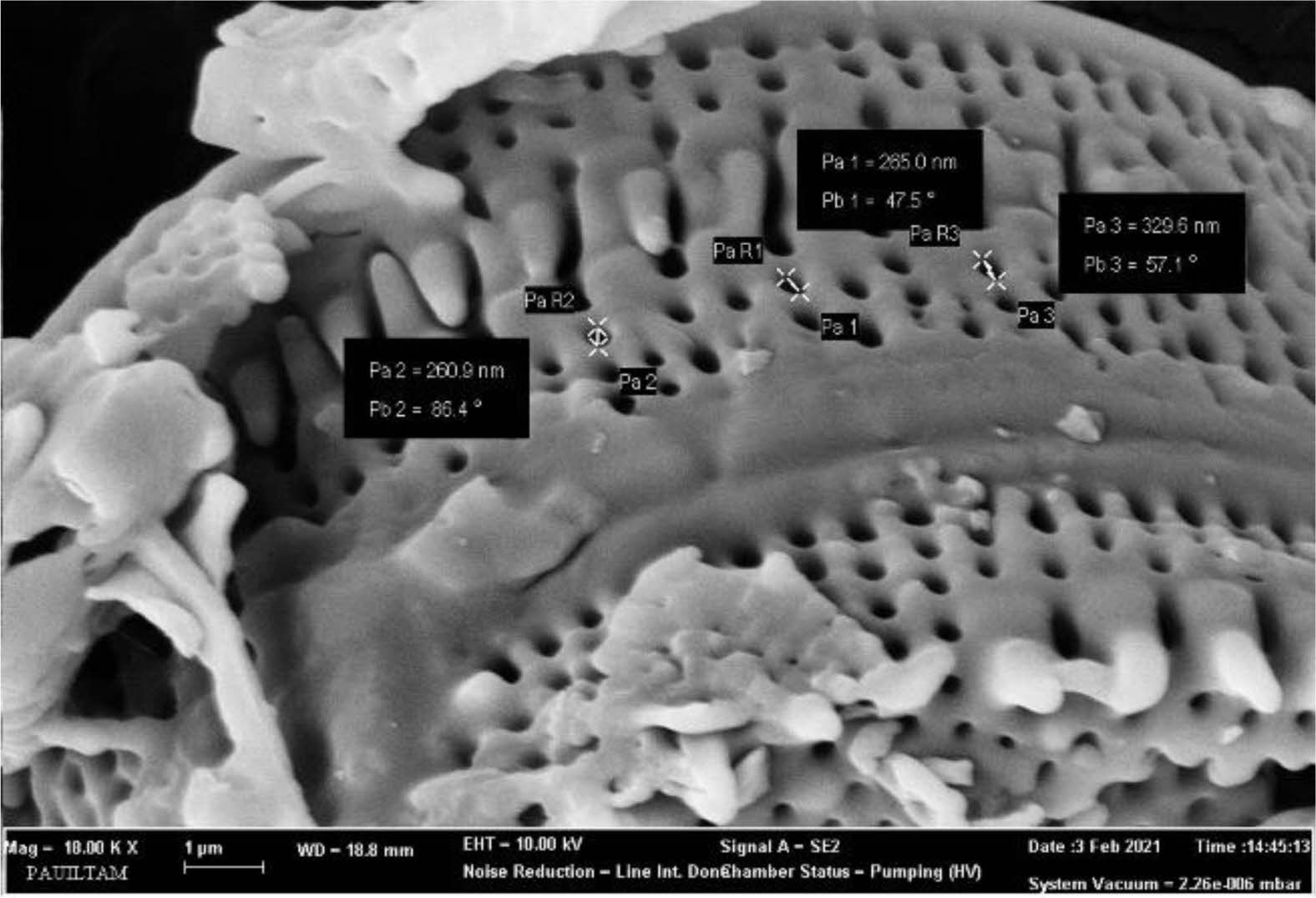Figure 4 SEM image of diatom in ADC scaffold with the porosity measure. |