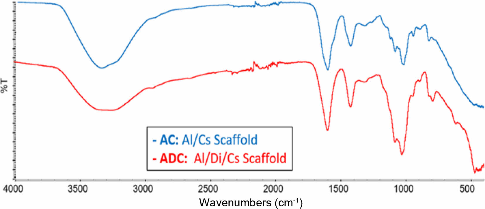 Figure 6 FTIR spectra of AC and ADC scaffolds. |