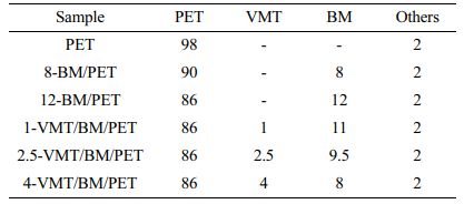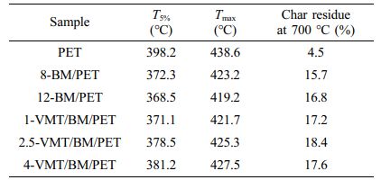 Table 4 Typical Parameters of PET, BM/PET, and VMT/BM/ PET Composites in the Thermogravimetric Analysis |
