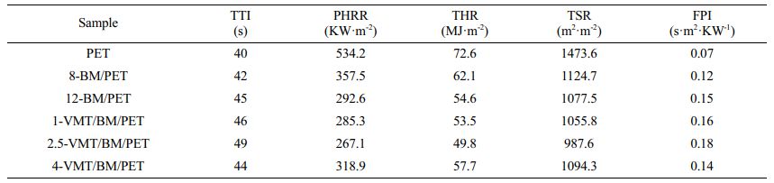 Table 3 Typical Parameters of PET, BM/PET, and VMT/BM/PET Composites in the Cone Calorimetry Test |