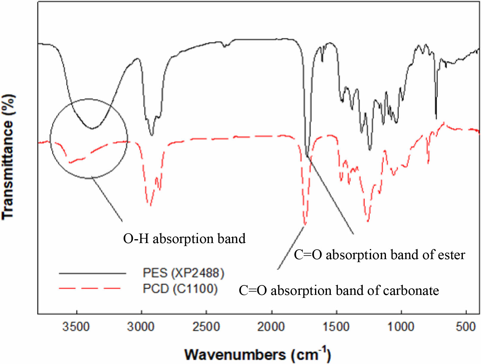 Figure 4 FTIR spectra of PES (XP 2488) and PCD (C 1100). |