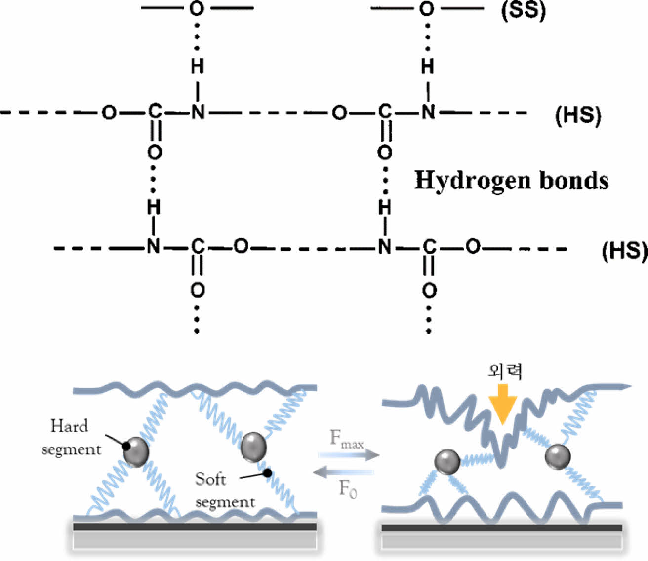 스크래치에 대한 자가복원 특성. Figure 12는우레탄 그룹내의 Hard segment(HS)와 Soft segment(SS)사이의 수소결합에 의한 PU의 자가복원 메커니즘을 나타내었다.16