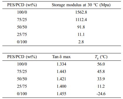 Table 2 Storage Modulus at 30 oC (Mpa) and Tg (oC) of PES/ PCD Blends Based PU Network |