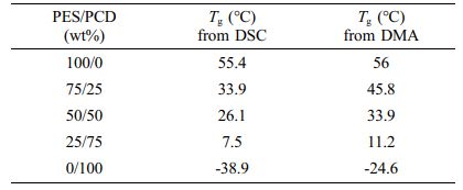 Table 3 Glass Transition Temperature (Tg) Obtained from DSC and DMA of PES/PCD Blends Based PU Network |